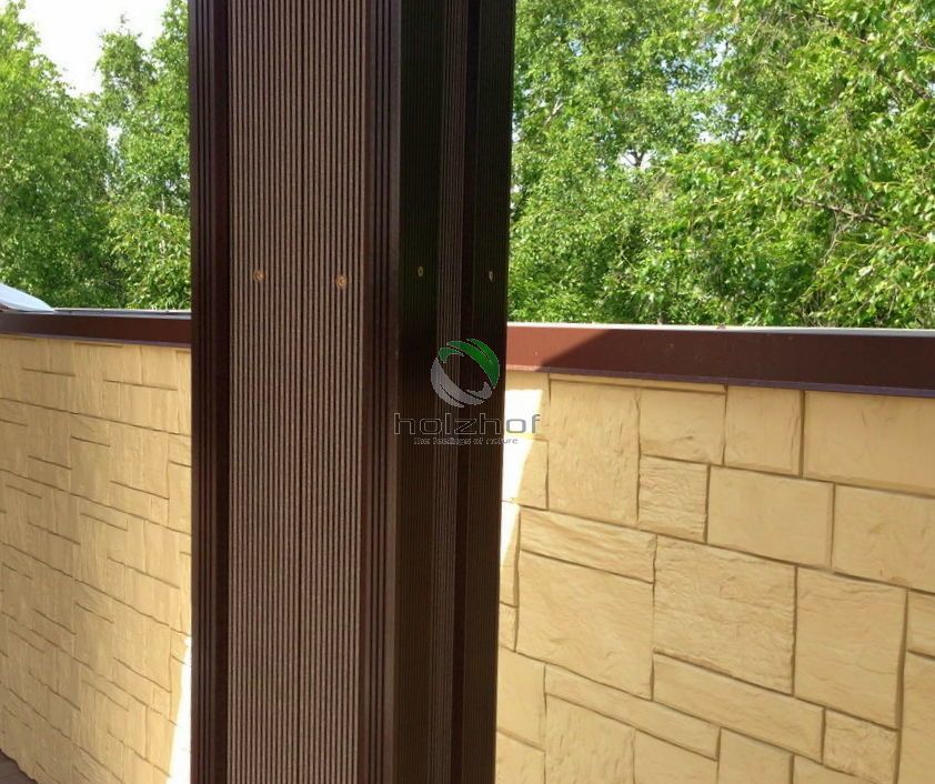 Монтаж был осуществлен бригадой наших монтажников. Все стационарные элементы конструкций, таких как веранда, парапеты, переходы, лестницы столбы и т.п. были обшиты именно террасной доской ДПК Holzhof. Обращаем Ваше внимание, что именно эта доска имеет целый ряд преимуществ для использования ее на коммерческих объектах: