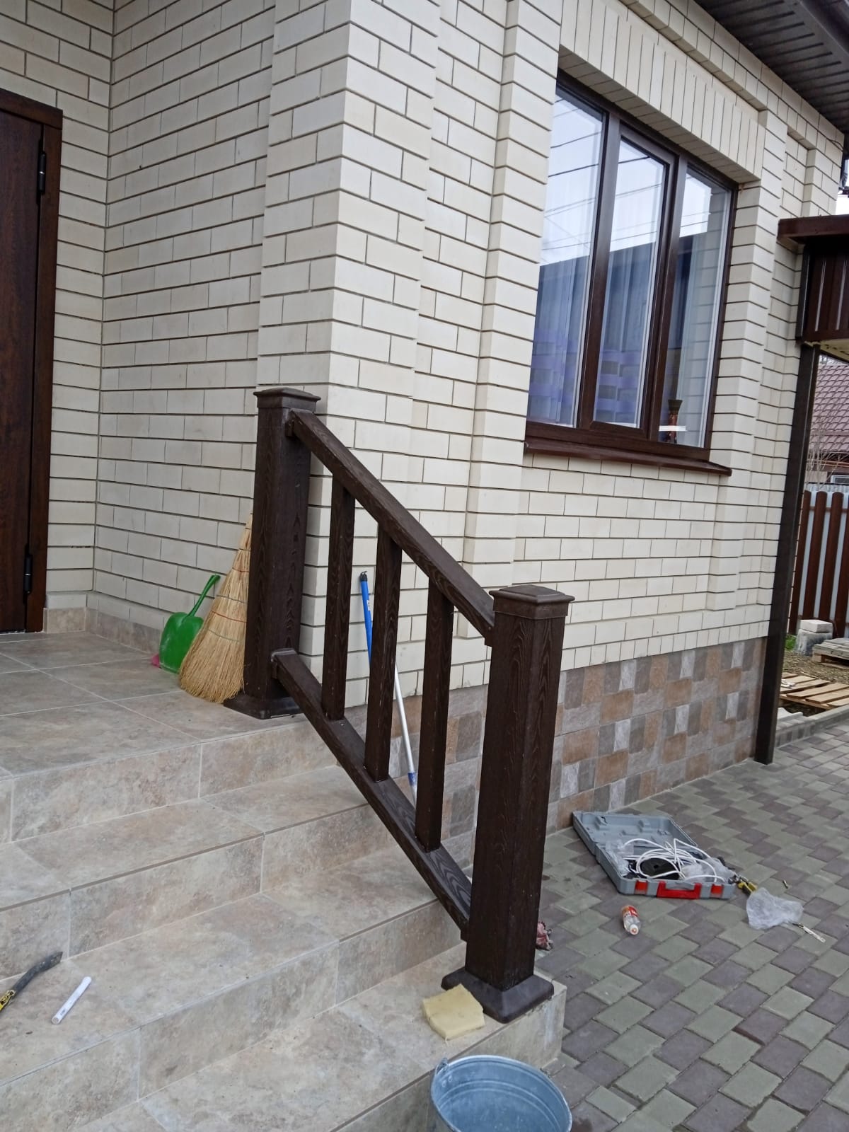 Перила пришлось пилить под углом и крепить без хомутов-креплений, так как клиент отказался покупать дорогие алюминиевые хомуты с шарнирами